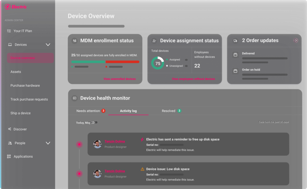 Electric simplifies mobile device management by giving you full visibility into device status, security, and compliance – all in one easy-to-use platform.